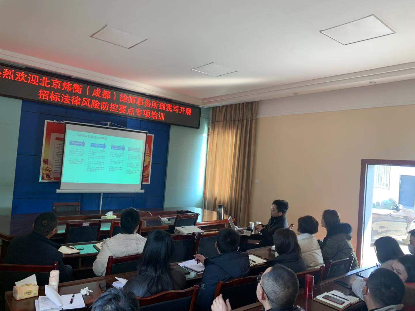 為促進公司干部職工對招標法律知識的學習,提升法律意識,增強員工風險防范能力,維護企業(yè)的合法權益,2021年1月18日下午公司特邀北京煒衡(成都)律師事務所何建華、魯青山律師對公司干部職工進行招標法律風險防控要點專項培訓講座。在本次培訓上,何…